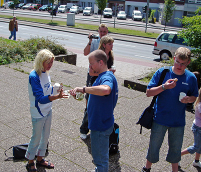 Danach werden ein paar Fläschchen Sekt vor der Halle geleert.
