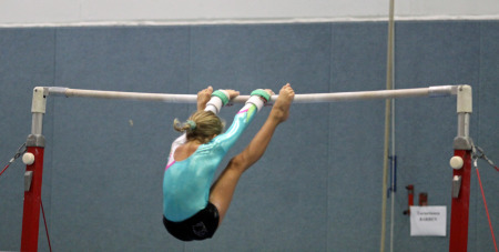 Bis zum Einturnen verging schon einige Zeit, denn just zu diesem Zeitpunkt war die A3 auf dem Kölner Ring komplett wegen Bauarbeiten gesperrt, so dass wir gezwungen waren, einige Umwege und über 10 km Stau in Kauf zu nehmen. Aber dann waren wir noch immer überpünktlich an der Halle, wo wir schon von Clara und Ilka erwartet wurden. Die beiden haben ja so Einiges auf sich genommen, war es doch ausschließlich Jil, die heute aus Mülheim an den Start geht.