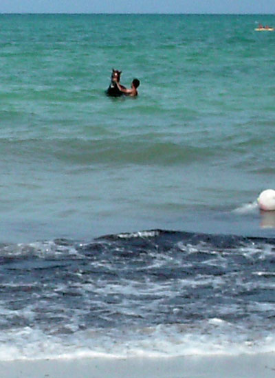 Zwischenzeitlich war es tagsüber so warm, dass Nouri, der Reitlehrer, seinem Pferd auch eine Abkühlung gönnte!