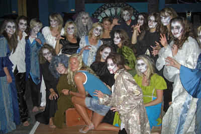 Die Shows sind ja auch jedes Mal der Renner, auch wenn wir die meisten schon kennen. Marjona war mal wieder bei der Teenie-Show „Tanz der Vampire“ dabei. Kurz vor der Show ab zum Verkleiden und Schminken.