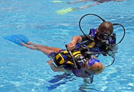 Das sollte der Beginn einer Leidenschaft werden. Sowohl Marc als auch Jil wollten dann auch "Nägel mit Köpfen" machen. Das bedeutete für Marc einen viertägigen "Open Water Diver" - Kurs, für den er zuvor auch noch zum Arzt musste, um sich eine Unbedenklichkeit bescheinigen zu lassen. Jil war für Freiwassertauchgänge noch zu jung, aber für diese Altersgruppe gab es die "Tauchpiraten" in Bronze, Silber und Gold, jeweils dreitägige Kurse, die im Pool durchgeführt wurden.