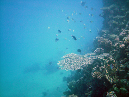 Vom Steg aus hatte man schon mal einen Blick von oben auf das hauseigene Korallenriff.