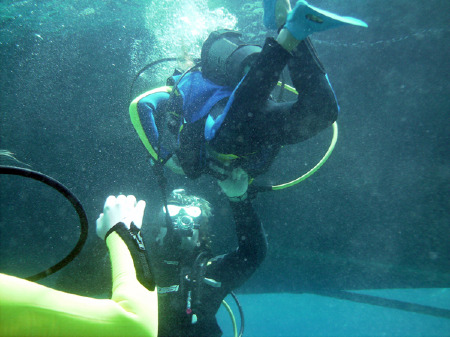 ... fasste Jil dann auch Zutrauen (ob eher zum eigent-lichen Tauchen oder doch mehr zu Tauchlehrer Axel sei dahin gestellt).