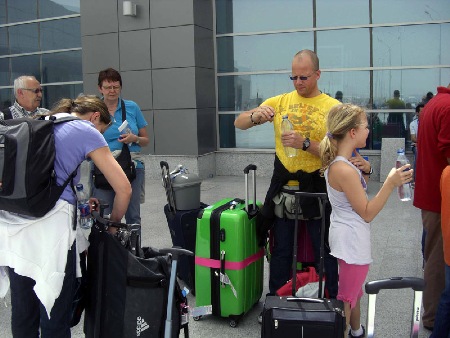 Nachdem wir uns mit gefühlten 1.000 Russen durch die Pass-kontrolle gequält und dann auch endlich unser Gepäckband gefunden hatten, warteten wir endlos vergeblich auf unsere Koffer. Nicht nur, dass wir zwischendurch drei Mal Stromausfall hatten (dem Gekreische beim ersten Mal nach dachten wohl etliche Personen, dass ein Terroranschlag bevorstehe), unsere Koffer wollten einfach nicht kommen. Das Band leerte sich zusehens, nur wir und ein paar andere Familien standen da und schauten ziemlich dumm aus der Wäsche.