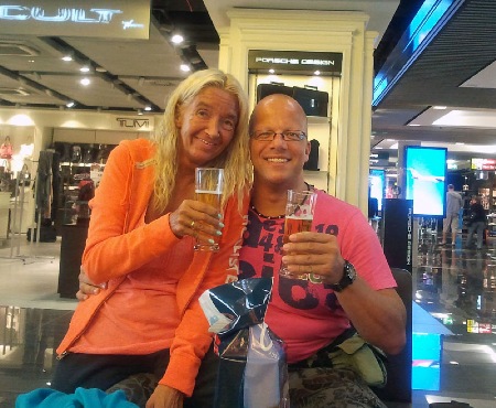 ... und nach den Kontrollen und dem Einkauf im Duty-Free-Shop dann auch noch ein leckeres Bierchen.