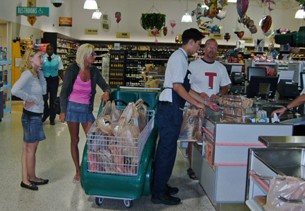 Am Nachmittag begaben wir uns dann auf unsere letzte Einkaufstour. Zum Ausparken bekamen wir dabei Hilfe von unseren Nachbarn. Knapp drei Stunden verbrachten wir im K-Mart und bei Publix. Ob es an Sandras Einkäufen lag? Als sie bezahlen wollte, sagte die Kasse gar nichts mehr. Im Publix suchte Marjona verzweifelt nach Käsechips und beschwerte sich bei Michelle, dass es wohl keine gebe, da stehe ja nirgens „Käse“. Schlaue Antwort: „Du musst ja auch unter „cheese“ gucken.“ Ach so! Übrigens, auch im Publix dauerte es etwas länger an der Kasse, da der Kassierer mit uns ein kleines Schwätzchen begann. Er bekam mit, dass wir aus Deutschland stammen und erzählte uns, dass er schon mal in München war. Währenddessen kam Jil – mit Michelle als Dolmetscherin – in ein Gespräch mit einer amerikanischen Oma. Tja, und die war so nett, dass Jil beim Gedanken, übermorgen nach Hause fliegen zu müssen, glatt in Tränen ausbrach und – natürlich – Gritta gleich mit.