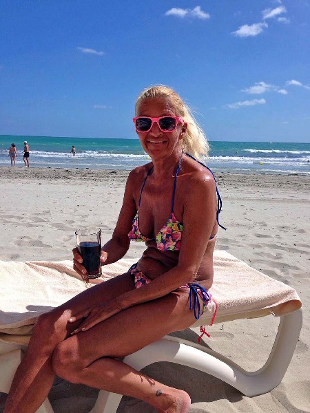 Neben dem Pool entspannt sich Gritta natürlich auch auf der Liege. Aber das wird sie hier nie so gut können wie am Strand.