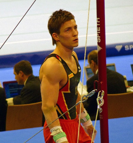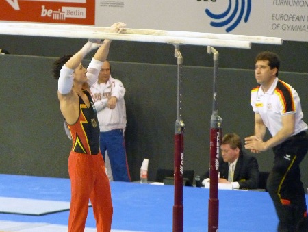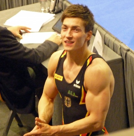 Nachdem er vor zwei Tagen beim Mehr-kampf am Reck gestürzt war, was ihn letztlich eine Medaille kostete, kam er heute glatt durch und turnte sich hinter Philipp vorerst auf den zweiten Platz.