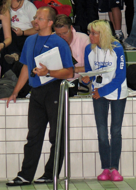 Hochzeitstag für Gritta und Marc (der neunte!). Und wo verbringt man den am besten? Richtig, in der Schwimmhalle, so heute beim Wettkampf in Recklinghausen. Reichlich Action, zumal die beiden neben Carina die einzigen Betreuer vor Ort sind. Und das bei einer nicht gerade kleinen Anzahl von Aktiven.