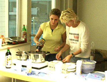 "Generalprobe" fürs 24-Stunden-Schwimmen. Gritta hat in ihrem Forum nach guten und preiswerten Waffelteigrezepten nachgefragt. Heute probieren wir eines aus. Alles schön und gut, nur das unsere größte Schüssel so gerade mal für die Teigmenge ausreicht. Was soll dann nächste Woche werden, wenn die zehnfache Menge her muss? Gritta hat schon eine Idee: Der Teig wird dann eben in einer Plastikbadewanne angerührt. Das Foto davon wird sicherlich ein Highlight auf dieser Seite werden.