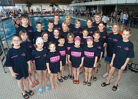 DMS-J im Hallenbad in Gladbeck!!! Erstmalig sind wir dabei und haben es auf Anhieb geschafft gleich 4 Mannschaften an den Start zu schicken. Klar erwarten wir noch keine Höchstleistungen, hier heißt es erst mal "Dabeisein ist alles"! Trotzdem ist Michelle wahnsinnig nervös, mehr noch als wenn sie selbst schwimmen müsste. Um das Gemeinschaftsgefühl noch zu stärken, wurden alle Aktiven mit einheitlichen Shirts ausgestattet und wir werden mehrfach gefragt, ob wir von der Telekom gesponsert würden. Tja, die Bottroper sind halt immer ein Hingucker!