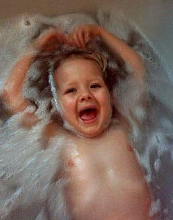 Jil leidet nach 2 Tagen ohne Hallenbadbesuch auch schon unter Entzugserscheinungen und muss am Abend unbedingt noch in die Badewanne, bevor das arme Kind völlig vertrocknet. Wie man sehen kann, lebt sie im Wasser wieder richtig auf!