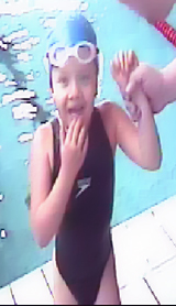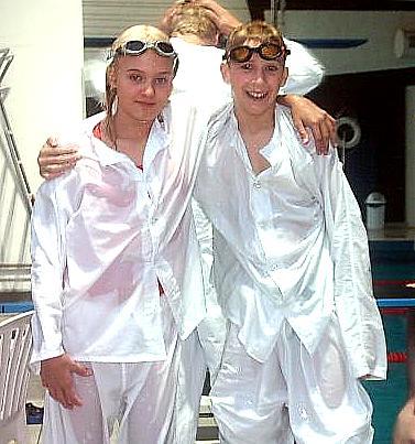 Mit 168stündiger (=einwöchiger) Verzögerung startet heute unser 2. internes Nachwuchsschwimmen. Gott sei Dank bleiben wir heute von unliebsamen "Begleiterscheinungen" im Becken verschont. Der Wettkampf selbst geht locker über die Bühne, alle haben ihren Spaß. Jil ist super-stolz auf ihren neuen Wettkampfbadeanzug, einen S-2000. Aber was halt so ein richtiger Wettkampfschwimmer ist... Ihre vier Starts spult sie jedenfalls ganz souverän herunter. Keine Spur mehr von Nervosität, die sie vor zweieinhalb Jahren bei ihrem allerersten Start noch gezeigt hat. Die Zeiten waren Klasse, mit dem Ergebnis über 25 m Freistil würde sie sogar an 1. Stelle der deutschen Jahresbestenliste liegen, wenn es ein offizieller Wettkampf gewesen wäre. Auch Oma Gitti, Nils und Nora, die zum Anfeuern gekommen sind, sind begeistert.