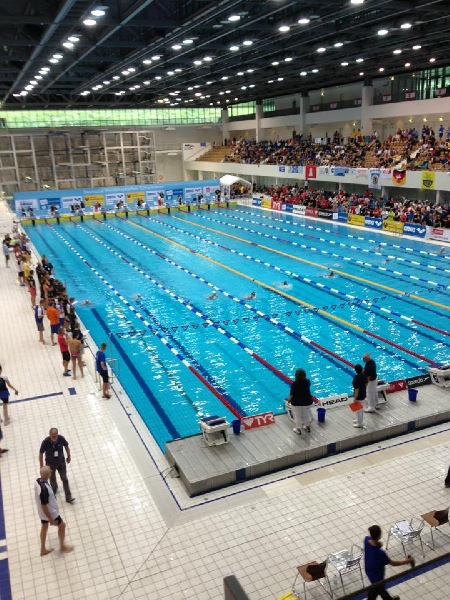 Marc schnuppert heute mal internatio-nale Wett-kampfluft und fährt zur Masters-EM nach Eindhoven. Das muss man doch mal ausnutzen, wenn es ganz in der Nähe ein solches Event gibt. Und die Atmosphäre im „Pieter-van-den-Hoogenband-Zwemstadion“ ist schon beeindruckend...