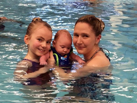 Jonas ist heute erstmals beim Baby-schwimmen. Demnächst wird er ja dann bei unserer Tanja im Kurs sein.