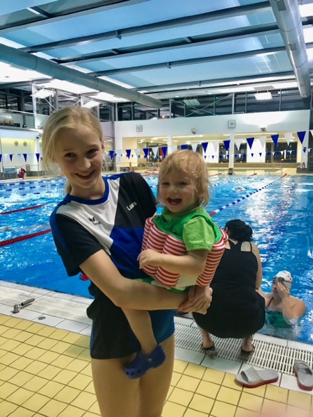 Jil läuft sich zwei Tage die Füße wund, um ihre Kleinen zu betreuen, springt am ersten Tag auch selbst ins Wasser und holt sich über 50 m Schmetterling den zweiten Platz. Marc hat auf Einzelstarts überhaupt keine Lust, aber geht in zwei Staffeln mit seiner Truppe ins Wasser.