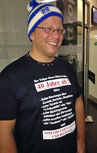 Mit seinen nunmehr 40 Jahren wird Marc wohl endgültig zum „alten Sack“ (zu-mindest hörte er die Bezeich-nung heute des Öfteren). Neben vielen Ge-schenken bekam er heute wieder seinen „Leib- und Magen-kuchen“ von Jil.